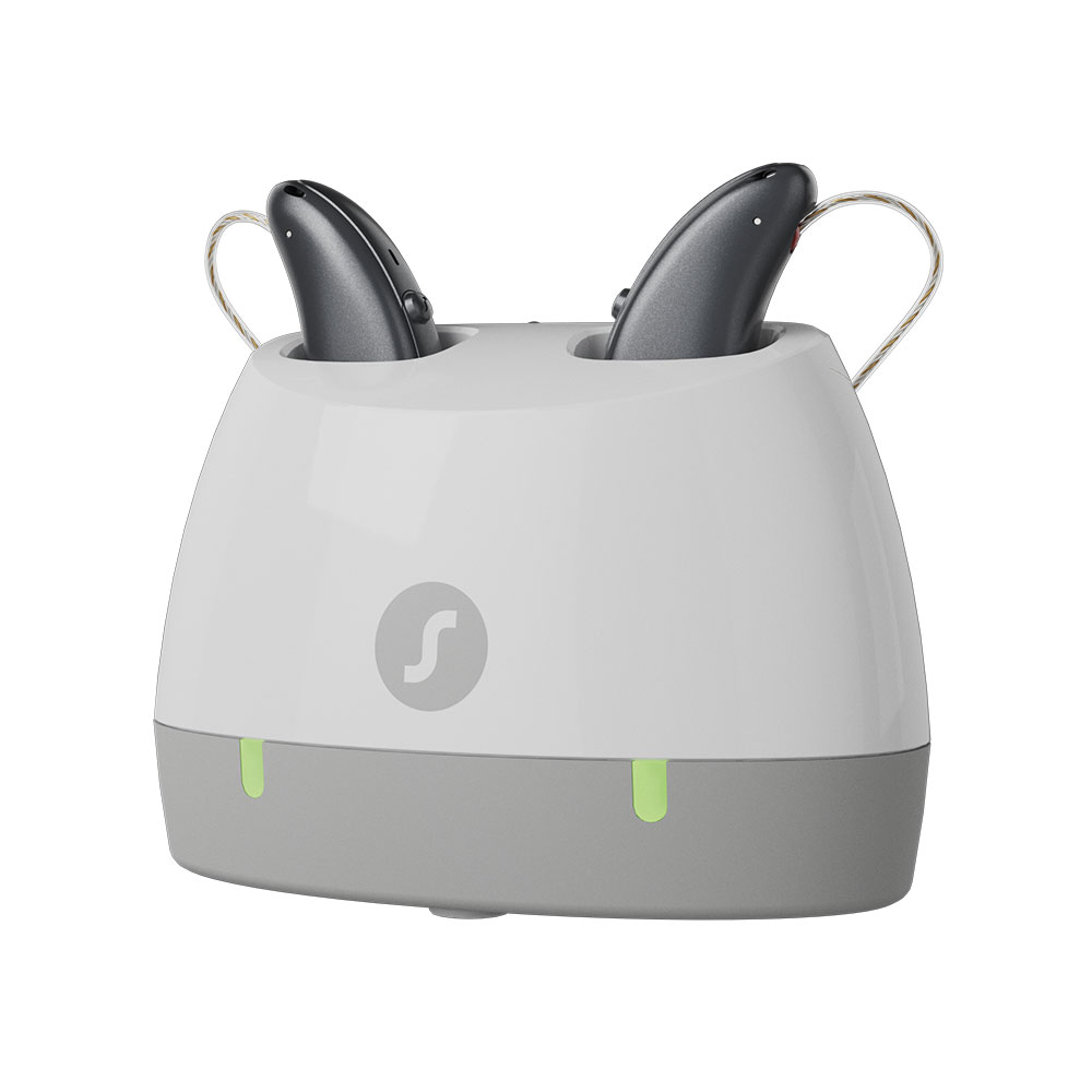 Leve seus aparelhos auditivos em qualquer lugar com nossos carregadores sem fio Qi de bolso. O carregador fornecer até 3 cargas completas.